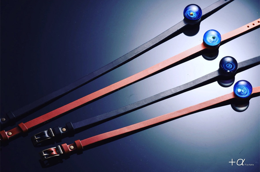 宇宙ガラス(PlusAlpha)やMIZU BRACELETなどを簡単に装着でき、アートをファッションとして楽しむ事が出来ます。